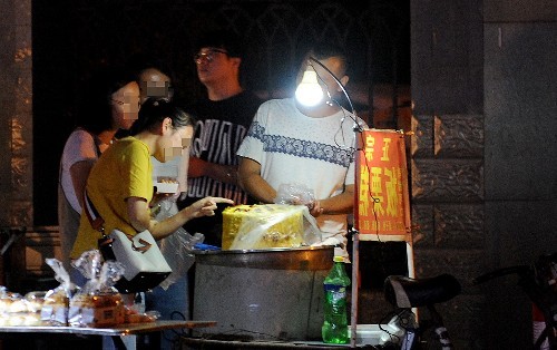 19日19时30分许,记者来到这所高校门口,体验购买小高反映的黄金板栗糕。