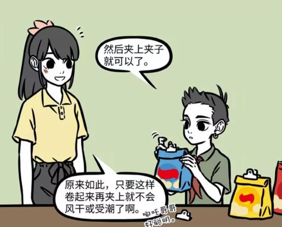 哪吒告诉李贞英,卷起来之后,还要用夹子夹上。李贞英经过思考之后,觉得这样卷起来就不会风干或者受潮。李贞英还不忘夸奖哪吒,哥哥好厉害。虽说哪吒没有表现,但内心应该会十分开心。