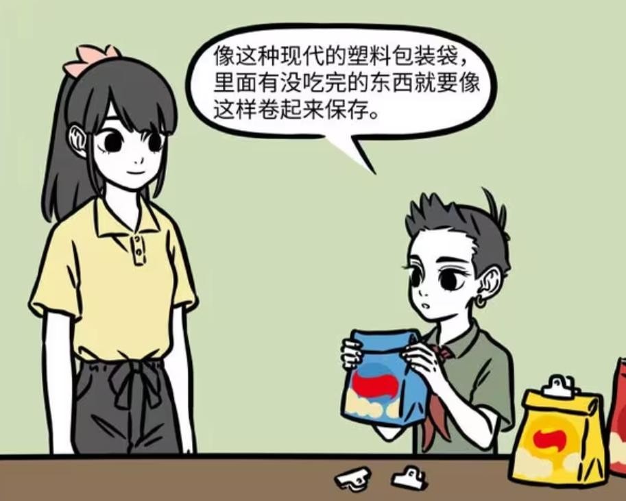 接下来,作为哥哥的哪吒开始教李贞英一些生活常识。比如现代的塑料包装,里面的东西吃不完,就要卷起来。李贞英从表现来看,就是听话的好孩子,学习态度很端正,看起来也有用心听。