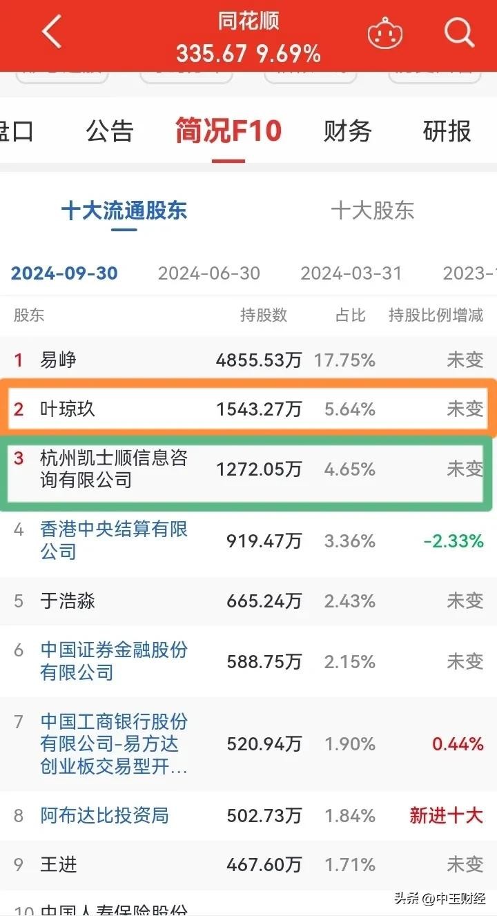 在924行情以来,同花顺作为金融证券信息类股票,出现了强势表现。目前公司动态市盈率高达140倍,股价335.67元,但经过近期公司公告来看,第二大股东和第三大股东都面临解禁减持压力。