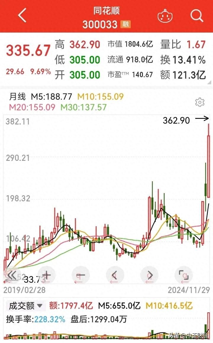 1. 公司的基本面:同花顺的业绩表现、行业竞争力、发展前景等基本面因素对股价的支撑作用至关重要。如果公司业绩良好、前景乐观,投资者可能更愿意持有股票,从而减轻解禁带来的压力。实际情况是我花顺经过炒作,推升目前的市盈率已经高达140倍。