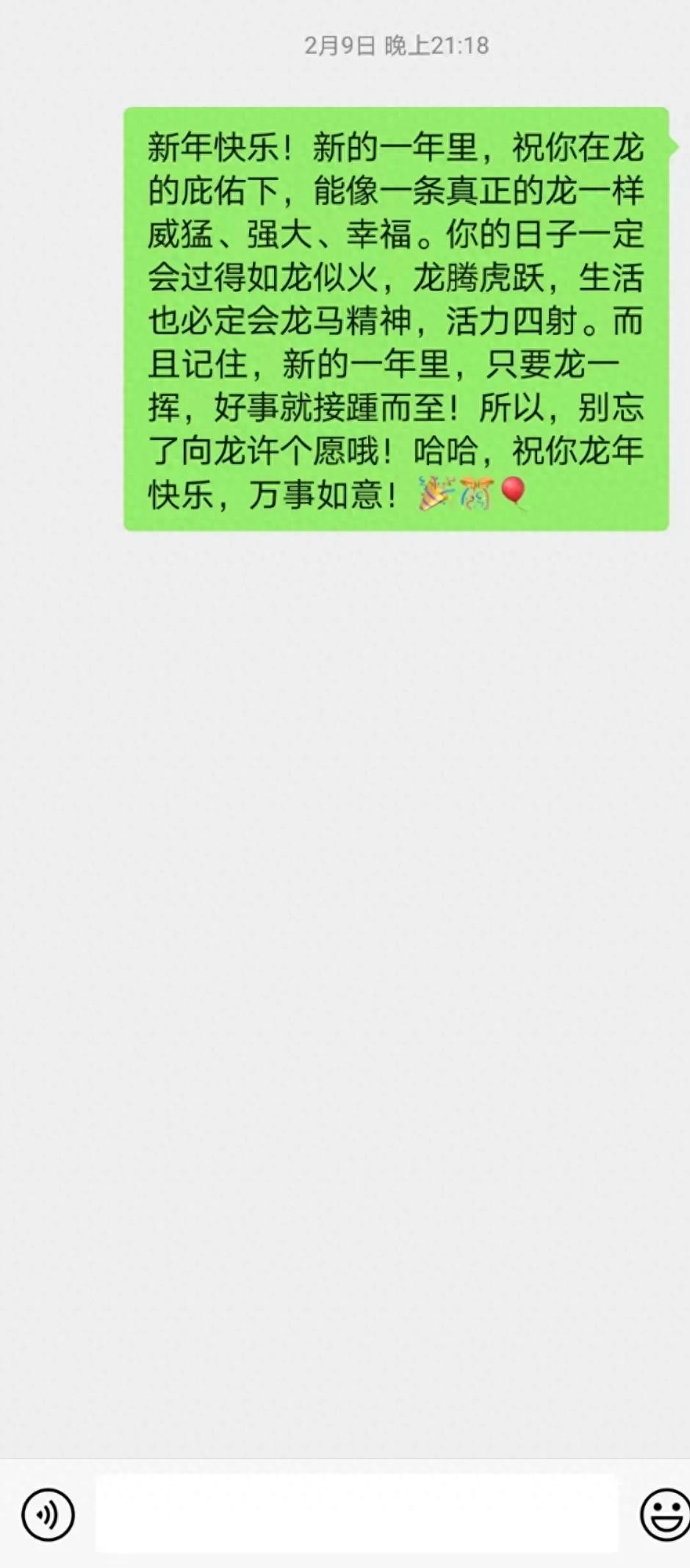 今年本来以为还是和之前一样大家都发拜年祝福语,可是我打开某信消息一看,却发现寥寥无几,基本上没有。就连我发给别人的,好多都懒得回复我了。