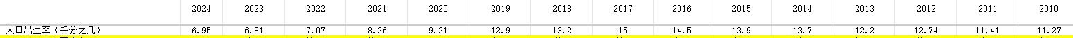 第一 出生率6.95,比23年的6.81略有增长,自2017年15的高位数后,7年来首次正增长,但是幅度很小,才千分之0.14.