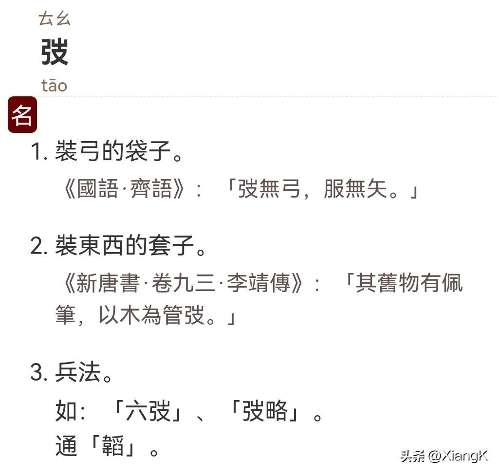 今天给大家介绍“弢”这个汉字,这个字不念【qí】哦,你知道它怎么读吗?