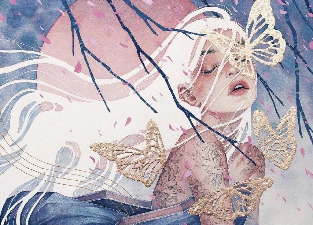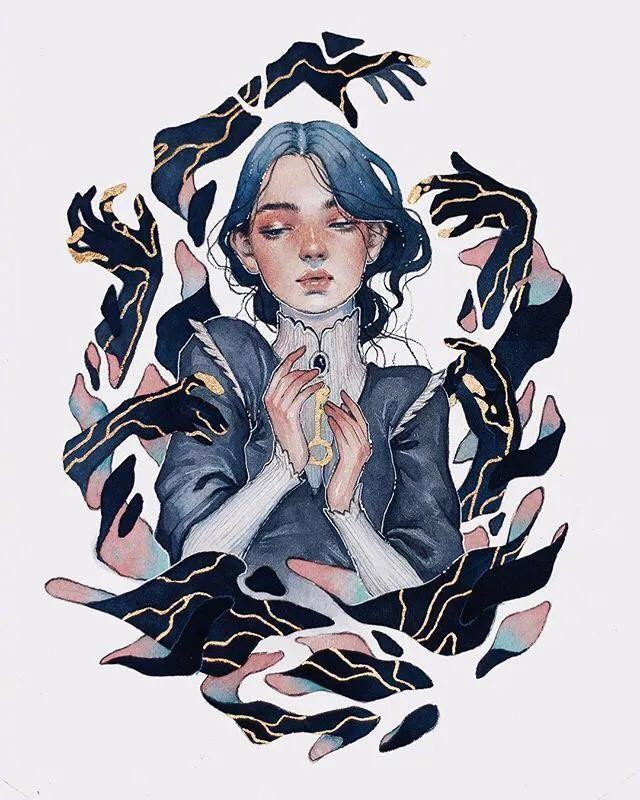 分享一组唯美水彩人物插画∣艺术家笔下的少女,色彩深沉美而动人