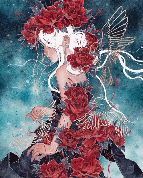 水彩人物插画∣艺术家笔下的少女,色彩深沉唯美而动人15图