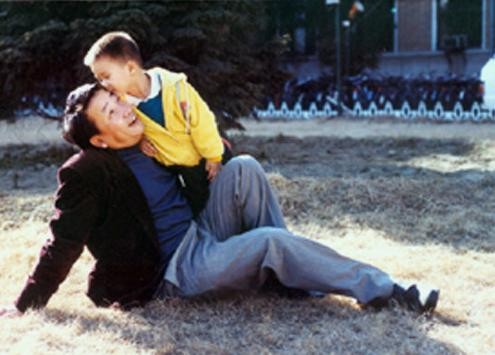 2004年北京电视台春晚舞台上,父子同台,姜昆表演相声,姜河表演杂技空中转盘。