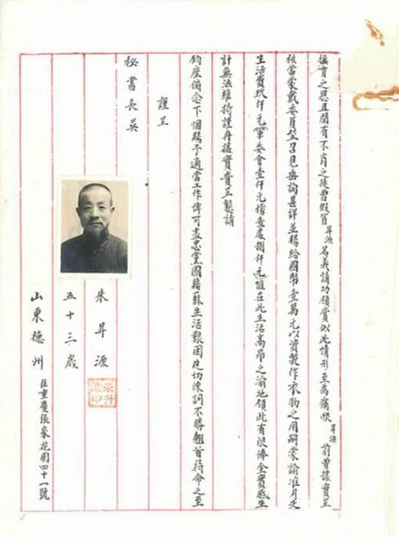 然而根据朱升源留下来的呈词显示,他在写这份呈词的时候,仅53岁,这么来看,他应该不是出生于1872年