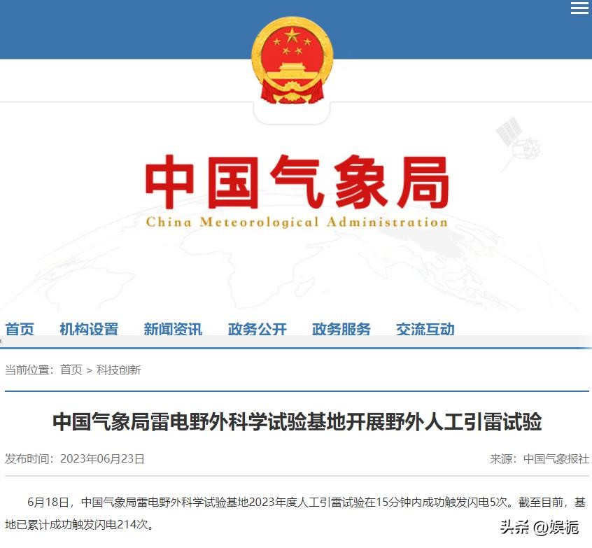 中国气象局于2023年6月23日所发布《中国气象局雷电野外科学试验基地开展野外人工引雷试验》