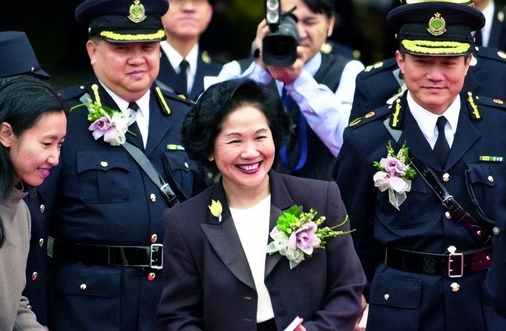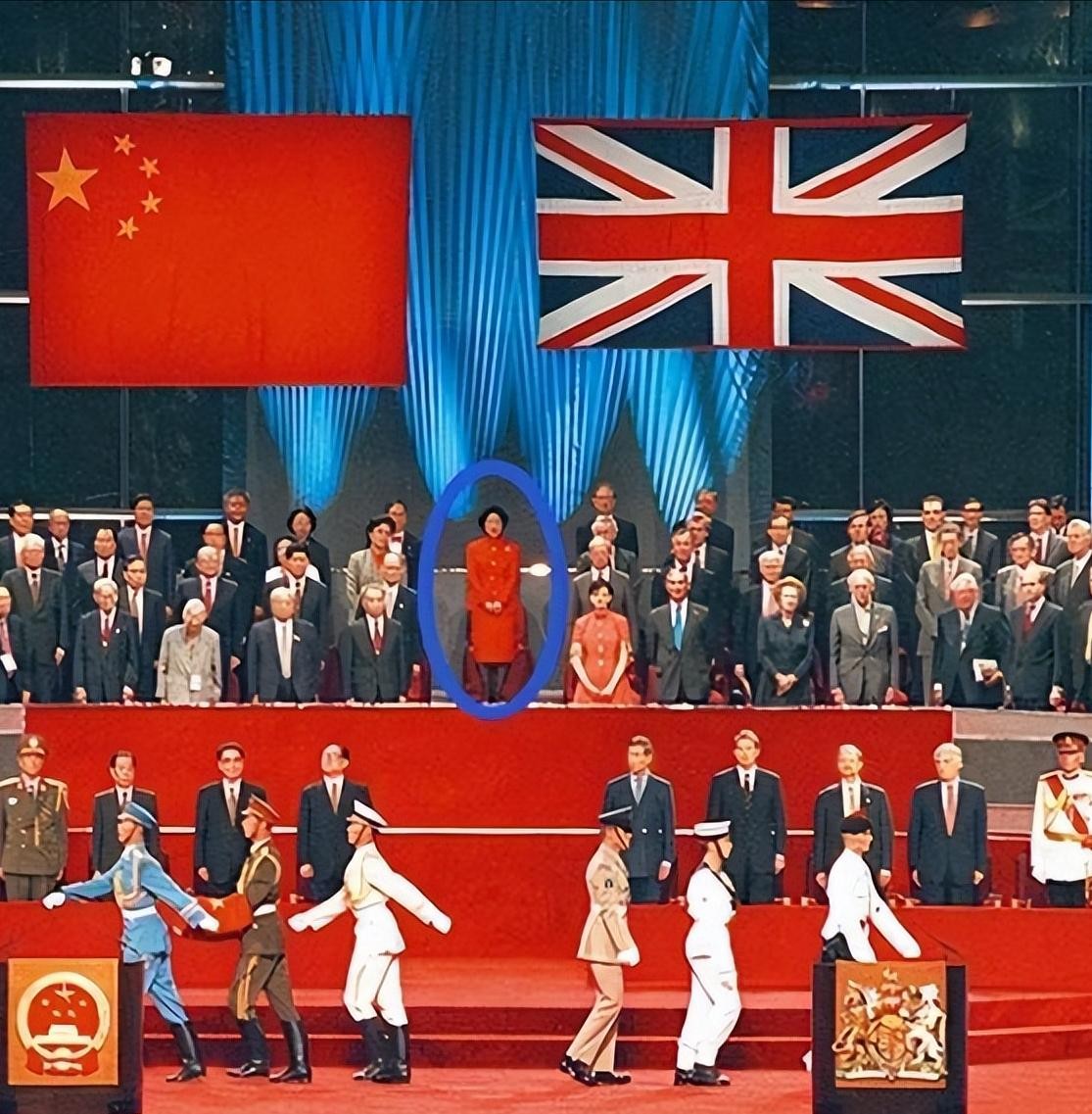 到了97年香港回归的当晚,在交换国旗的时候,陈方安生坐在两国C位,出尽了风头。
