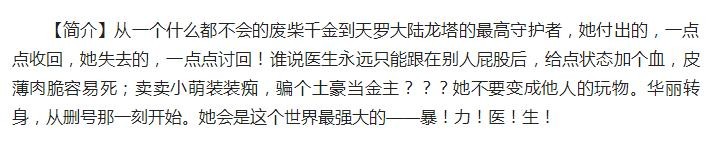 《第一医仙(原名:第一暴医)》,作者:落日蔷薇