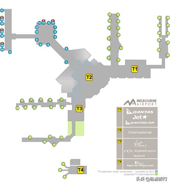 墨尔本机场4座航站楼相对位置