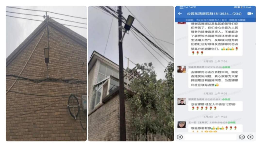 近期,吉娜娜想办法和包联单位一起协商解决了该小区的路灯问题,保证每个巷子夜晚灯光通明无死角,公园东路小区居民再也不用摸黑出行了,大家都高兴不已。