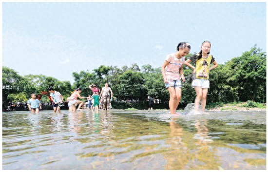 人们在灵渠戏水纳凉