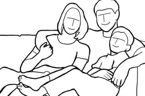 18、这是最基本的家庭合照,一家人坐在或靠在沙发上,尽量把拍摄放在人员上,减少拍出其他家具。