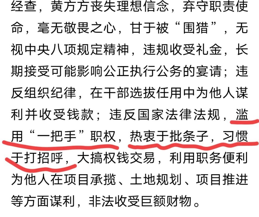 黄方方与其他人不一样的第四个特殊地方,通告中,他被指滥用“一把手”职权,热衷于批条子,习惯于打招呼!