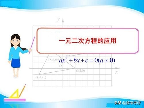 数学来源于生活,又应用于生活,当前的纳税,利息,分期付款,销售利润等问题都与一元二次方程有关,常见一元二次方程应用题类型有:①经营决策类;②平均增长率问题;③面积问题;④动态问题。解答这些问题时,不论背景如何复杂与变化,一定要抓住问题的关键,寻找等量关系,经过“问题情境-建立模型-求解-解释与应用”的过程,并注意根据实际意义对所列一元二次方程的解进行合理的取舍。