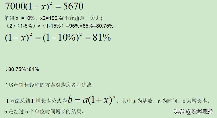 (2)求出先下调5%,再下调15%后的价格是原来价格的百分率,与开发商的方案比较,即可求解。