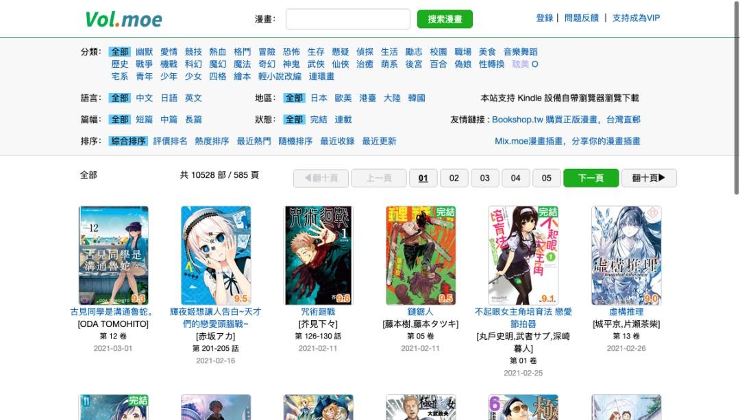 Vol.moe 是一个高清 Kindle 格式漫画搜集网站。它有上万部高清 Kindle 格式漫画资源可供下载,同时还提供了将漫画推送到 Kindle 设备的功能。如果你在使用 Kindle 设备看漫画,就去看看这个吧。