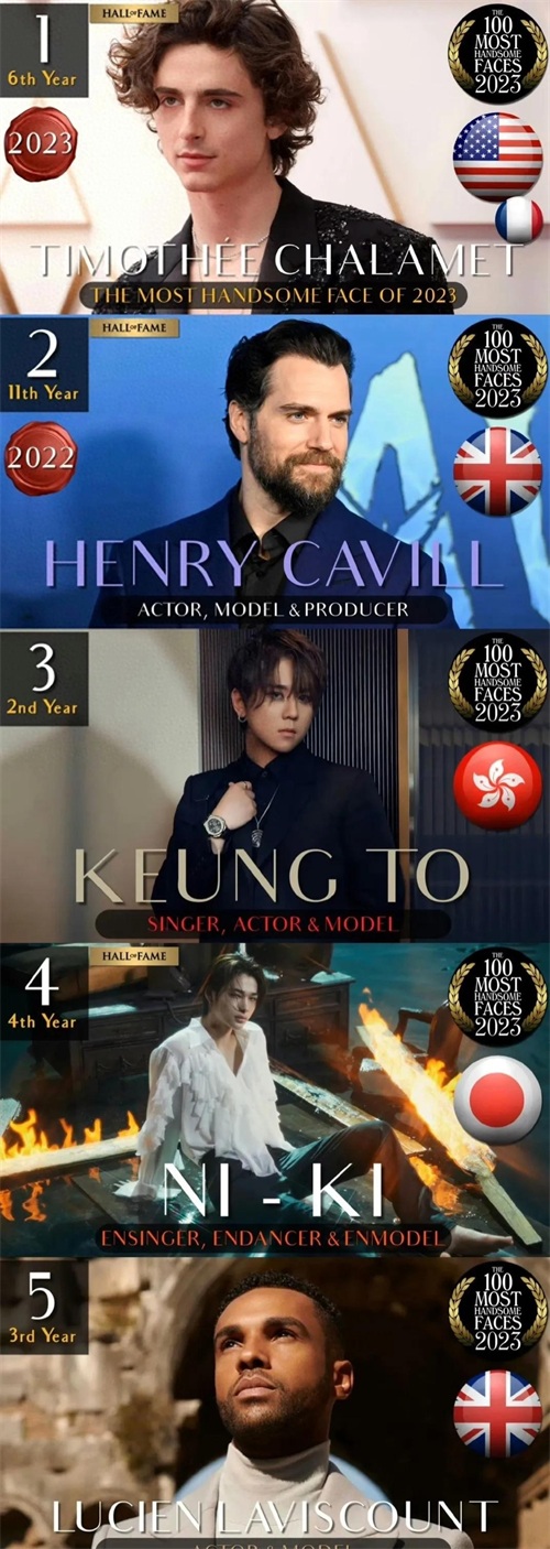 中国香港艺人姜涛排名第三,亚洲第一帅