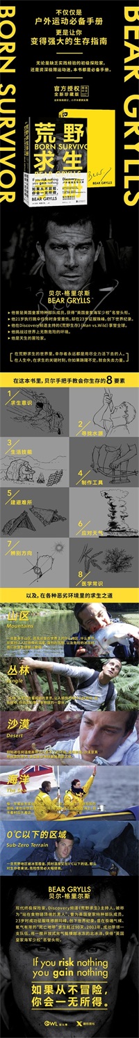 他将告诉你,在各种恶劣环境里,包括山区、丛林、沙漠、大海和零度以下的区域里的求生之道。无论是缺乏实践经验的初级探险家,还是资深极限运动迷,新近上市的《荒野求生手册》为2017年全新珍藏版,全彩锁线胶订,小开本便携实用。