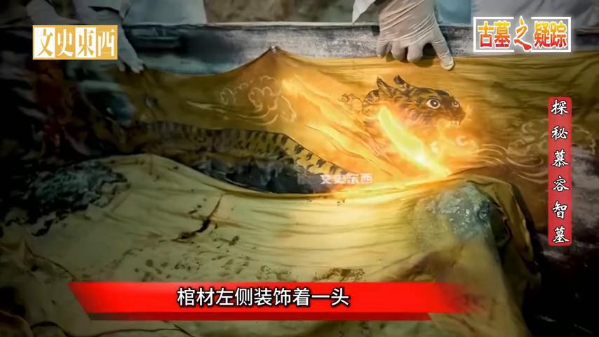 为了保护棺材里头的文物,考古队开始进行开棺考古。当棺材打开的一瞬间,所有在场的专家全都被棺材里头的景象震撼到了。一件半透明的丝织品挡在了考古队与墓主人之间,上面还点缀着星星与银河。棺材左侧装饰着一头张着大嘴准备捕食的猛虎,另一侧的青龙则吐纳着祥云。