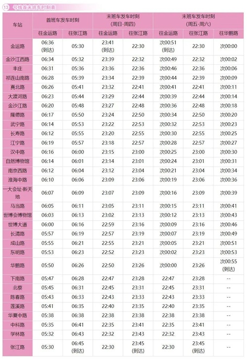 各位小伙伴们注意啦!自4月28日起,地铁1、7、8、9、10、13号线共计6条线路,逢周末(周五、周六)实施延时运营,全网首末班车时刻表也随之更新,记得收藏哦~详见↓