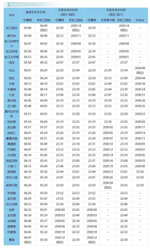 收藏!上海地铁全网最新首末班车时刻表来了