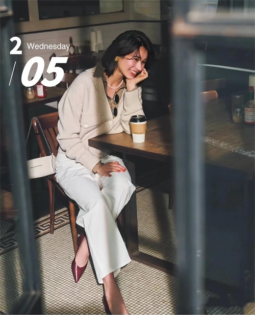 今天和六小姐一起欣赏白色裤子搭配
