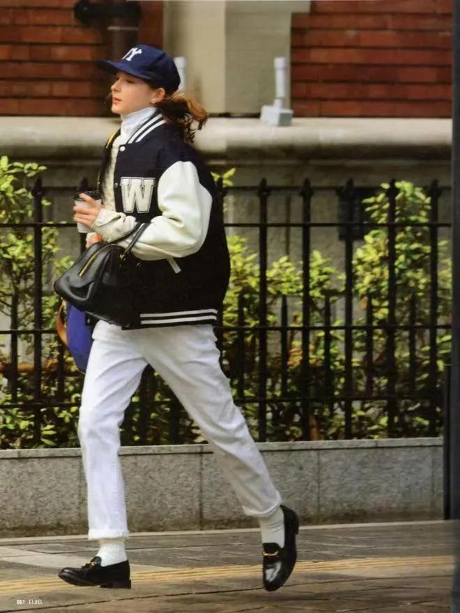 棒球服➕白色休闲牛仔裤