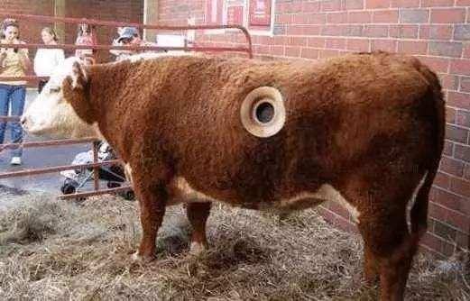 就拿奶牛来说,人们的牛奶主要来自它。孩子们喝牛奶增加营养,而牛奶也可以用来做出与他相关的农副产品,比如,奶糖、奶酪、酸奶、奶油……这些通过牛奶延伸的产品丰富了我们的餐桌,改变了我们的饮食习惯,更帮助了我们更好的成长。然而,有些奶牛场的奶牛身上却被人为开了一个圆圆的洞,有时候挤奶工还会把手伸进洞里。为什么会出现这样的情况,在奶牛身上为什么会出现那个洞,而有了那个洞,奶牛不疼吗?