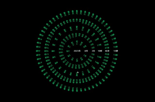 2、创意圆圈数字时钟,这个造型很有特色,做屏保时候也是非常好看的一个主题。