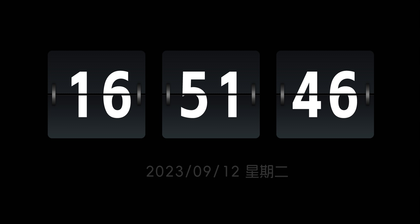 6、这个黑白颜色的时钟屏保,主打一个简洁,典雅,一种安静的美,不喧哗,不浮躁,非常素雅的视觉美;