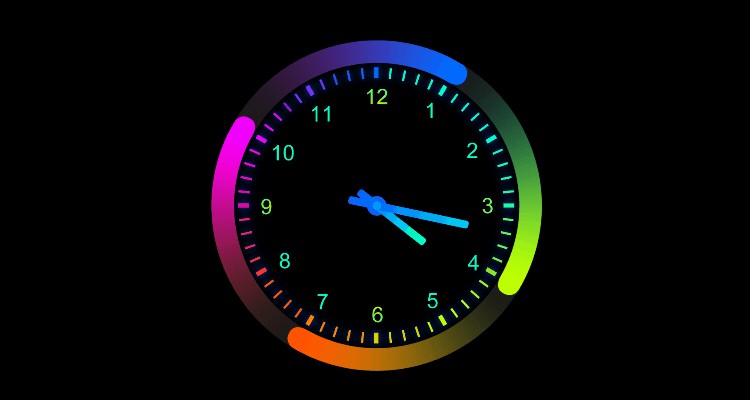 7、彩色创意秒针表盘屏保,把秒针变成会转动的圆圈,整个时钟表盘好像盘活了起来,很有特色;