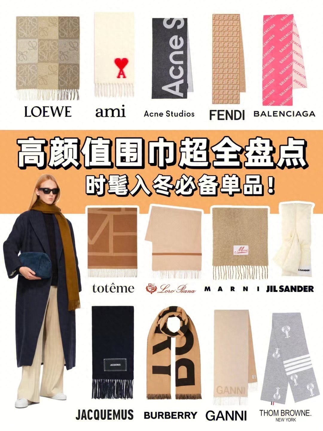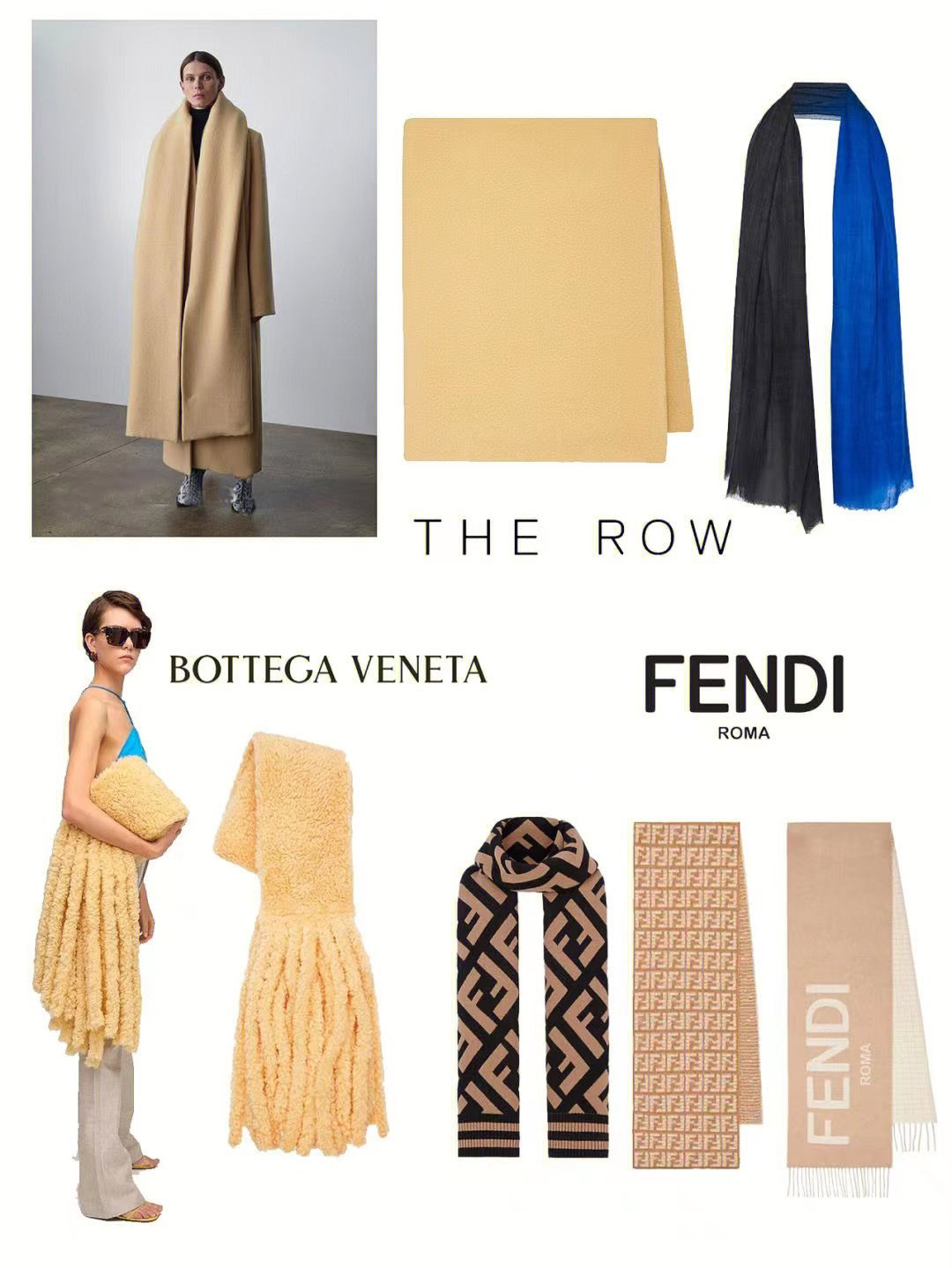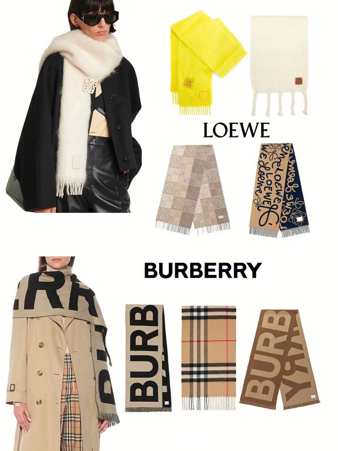 Loewe BBR GUCCI Fendi等大牌围巾也是不少时髦精的秋冬围巾首选!老花,棋盘格,品牌logo印花别致又吸睛。