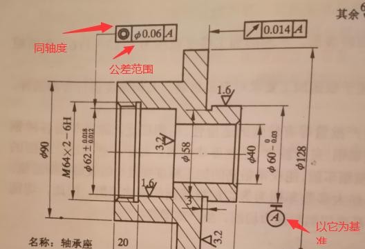 那第一个尺寸标注的是同轴度他的公差是φ0.06 是以A这个为基准。