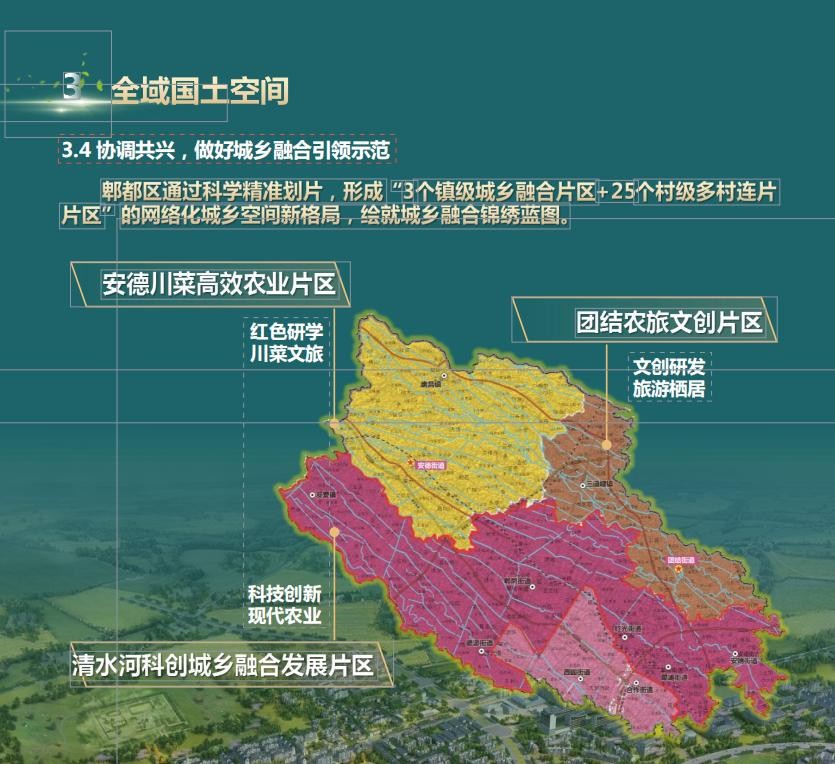 25+100个村/社区:战旗村、锦宁村、青树村、江安村、东林村等25个中心村和100个新型社区