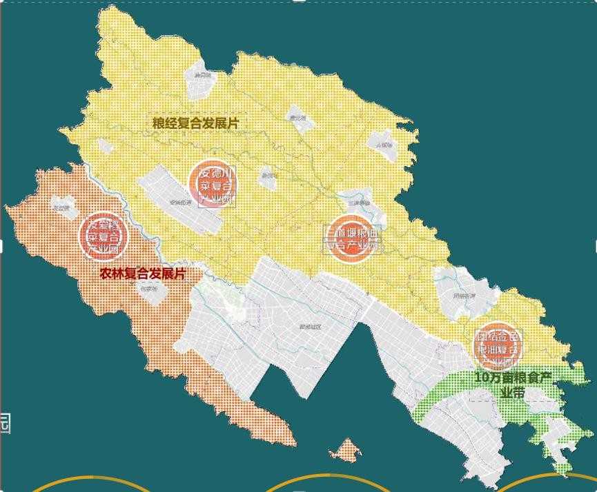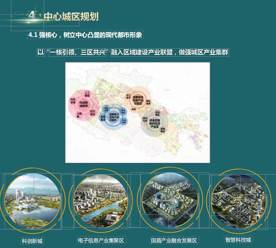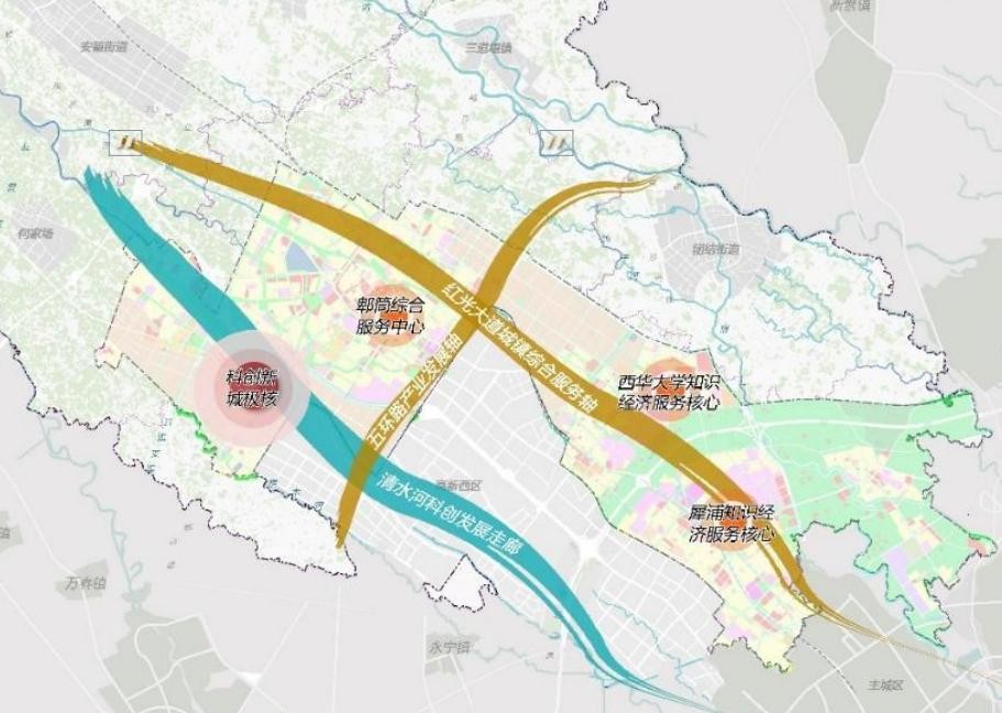 三心:郫筒综合服务核心、红光知识经济服务核心、犀浦知识经济服务核心。
