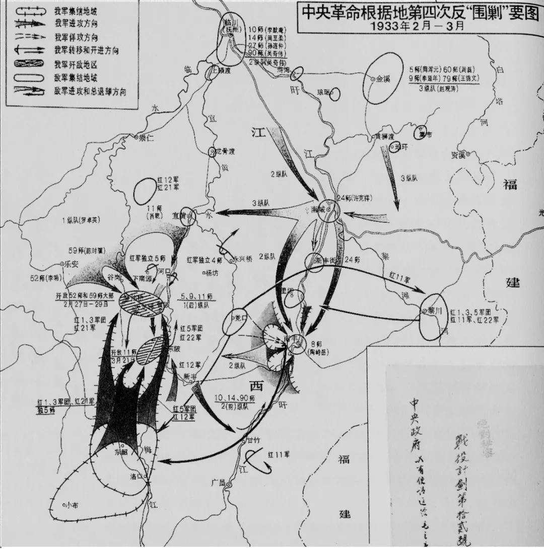 周恩来率领中央红军,采用“集中优势兵力打歼灭战”和“各个击破”的战略战术,消灭国民党军3个师,取得了第四次反“围剿”的胜利。