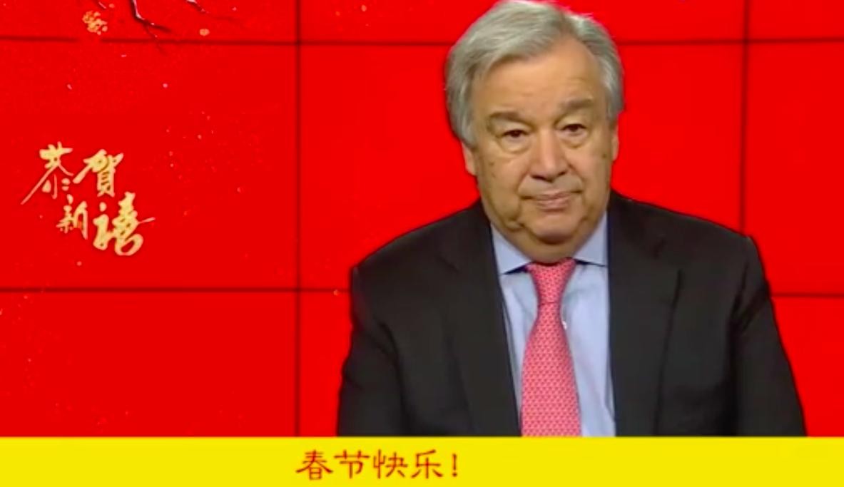 在致辞中,古特雷斯用中文说“春节快乐”。