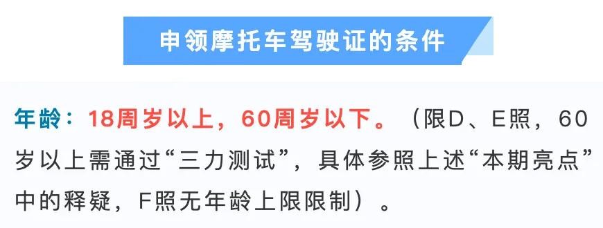 根据遵义交管部门发布的通告,报考D、E、F类摩托车驾驶证的人员需要满足各类条件。首先报考人需要通过体检,在年龄方面D、E类驾驶证限制在18-60周岁、F类不受年龄限制,但需要报考人通过三力测试(记忆力、判断力、反应力)。