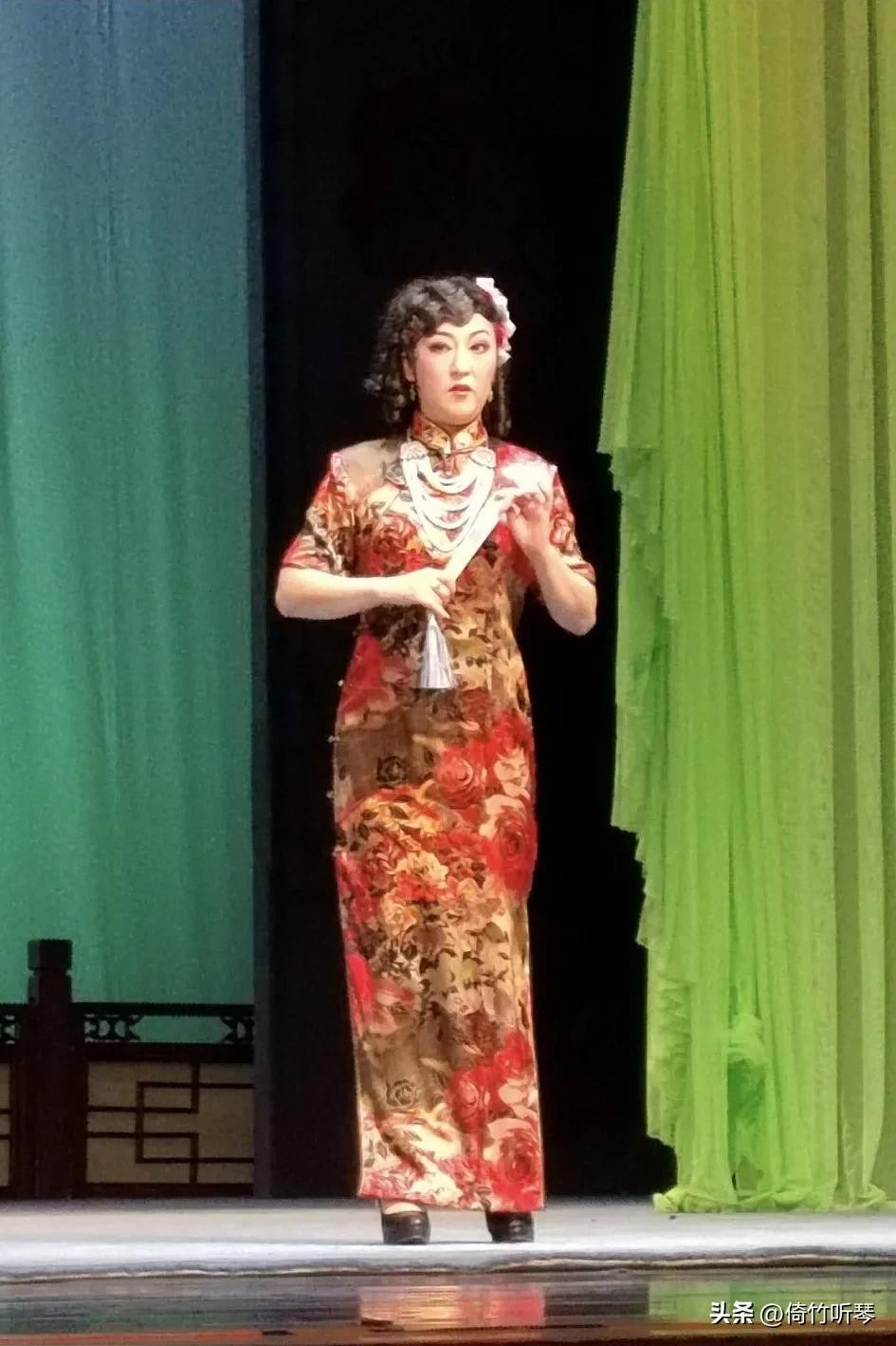 爱派再传弟子冯荣玲饰演五嫂金玉,这是她在舞台上穿着最时尚的一个人物,个头高挑,身段窈窕,很靓眼。