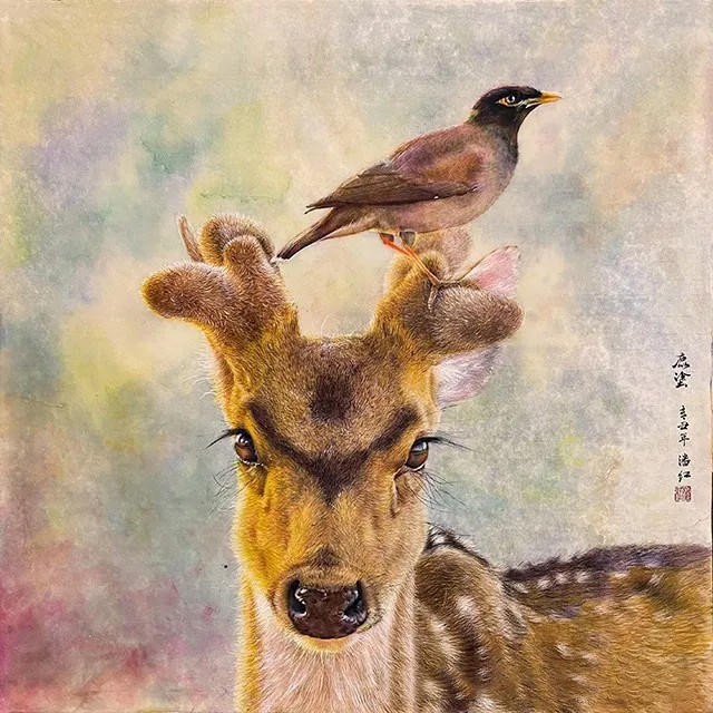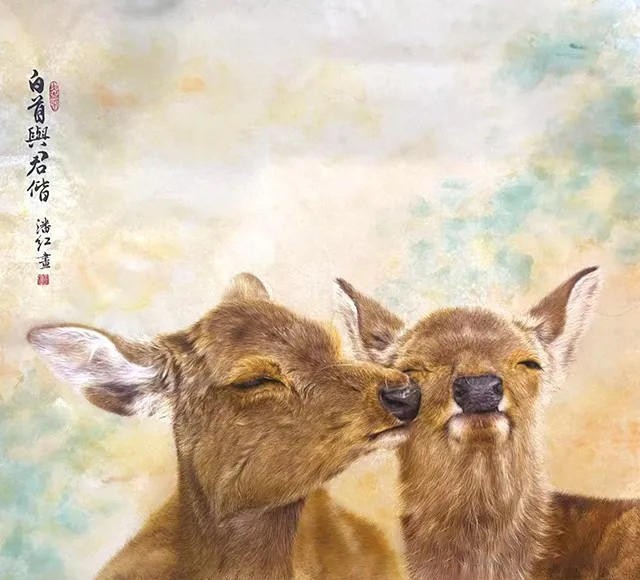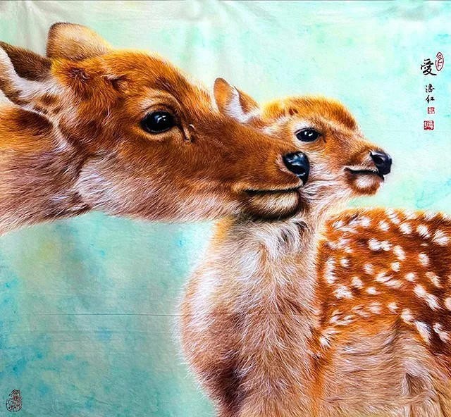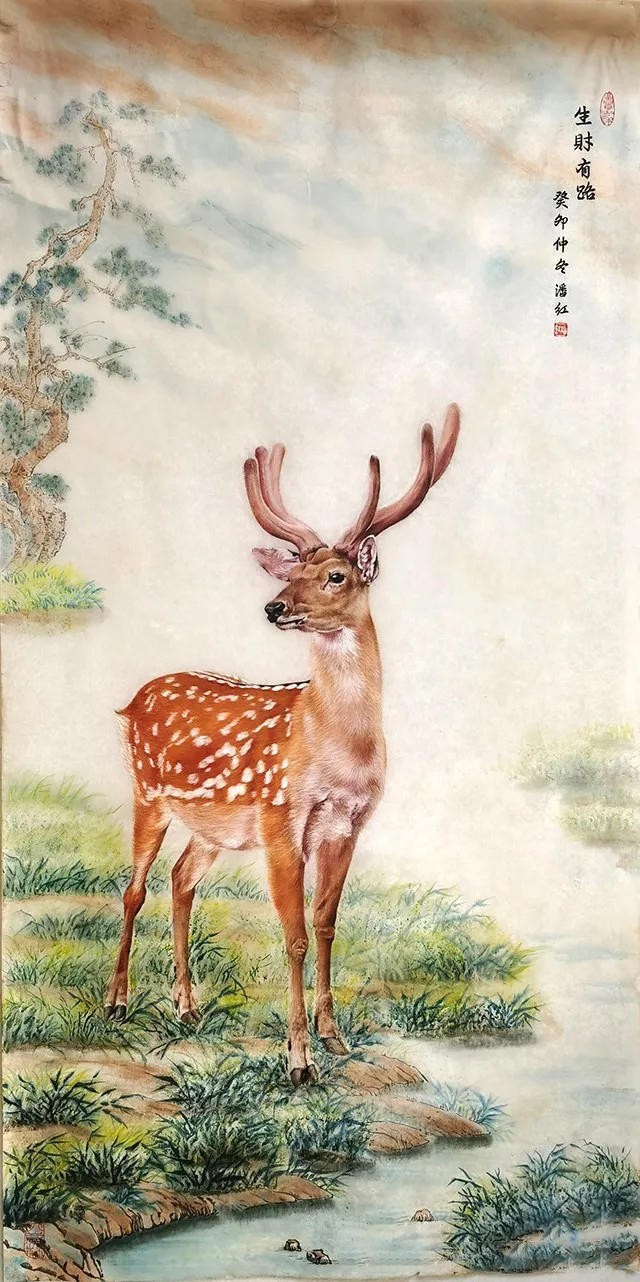 2023年潘红母女被国家文联重点关注,并在互联网推出:闪耀中华盛世名家----鹿画家潘红和“一带一路推出最具潜力青年书画家高雅娜”。2024年初,分别被清华美院和中央美院先后聘为客座教授。潘红在自己创作的同时,也在致力于培养祖国下一代,大学校园和贫困生乡村的留守儿童校园里也常常出现她的义讲的身影。在她众多的学生中,最出色的还是从小就跟着她一起学画帮着妈妈教学生,耳熏目染的女儿一级美术师高雅娜。喜欢墨香的高雅娜很自然的考入了美术学院,如今早已大学毕业的女儿受父母的熏陶早已走上了艺术之路,她的作品在继承了妈妈潘红的风格之上,更加引领潮流,细腻精致,给人耳目一新的视觉效果。