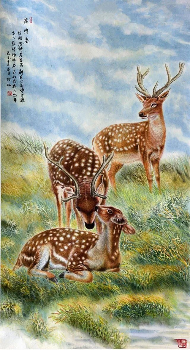 潘红自幼跟随母亲马丽娟学习琵琶弹奏和绘画,感受艺术的天然魅力,后在兄长熏陶下,酷爱文学及其他艺术。随着年龄的增长,她把文艺的主攻方向定在了书画上,1986年考入中国书画函授大学国画班学习,后转益多师,书功画技尤其是绘画造诣日新月异,为了艺术上的更大发展,走访名山大川,转拜多师。专攻兼工带写的鹿画创作,潘红的鹿画作品独特而带有浓郁的大兴安岭地域风貌,既充满女人独特的视觉魅力和灵性、又具有男性雄壮霸气的阳刚之气。多年来,其鹿画作品频频见诸于各报端书刊,并陆续在国内外各类大型展赛中入展、获奖,作品先后流传广东沿海、香港、美国和加拿大等一些国家和地区,广受好评。