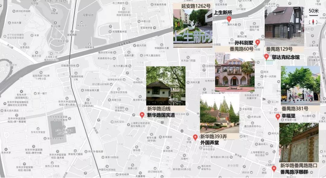 新华路地处长宁区东侧,老洋房聚集,人文氛围浓厚,素有人文新华之称。道路两侧梧桐成荫,春夏时节绿意盎然。