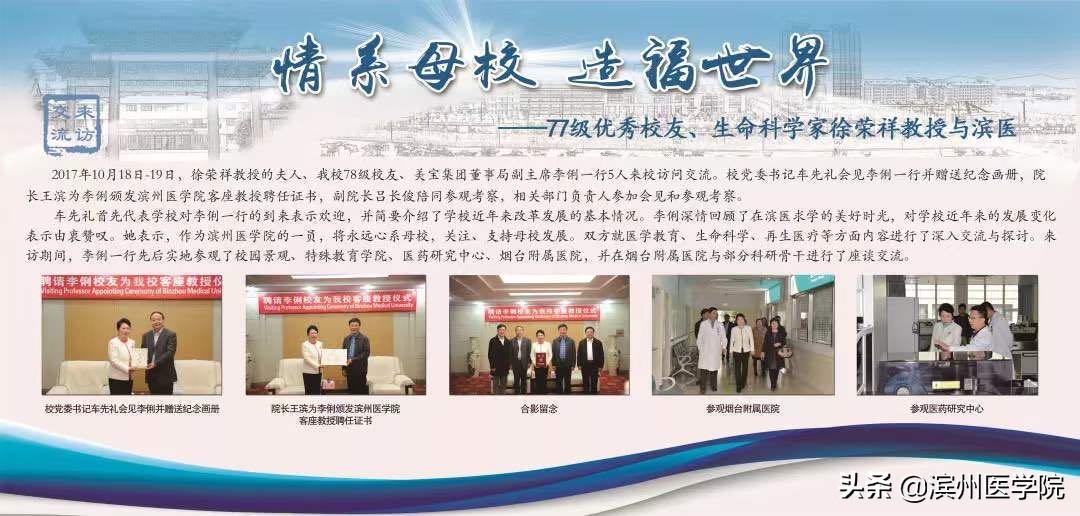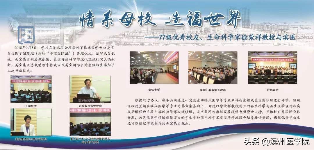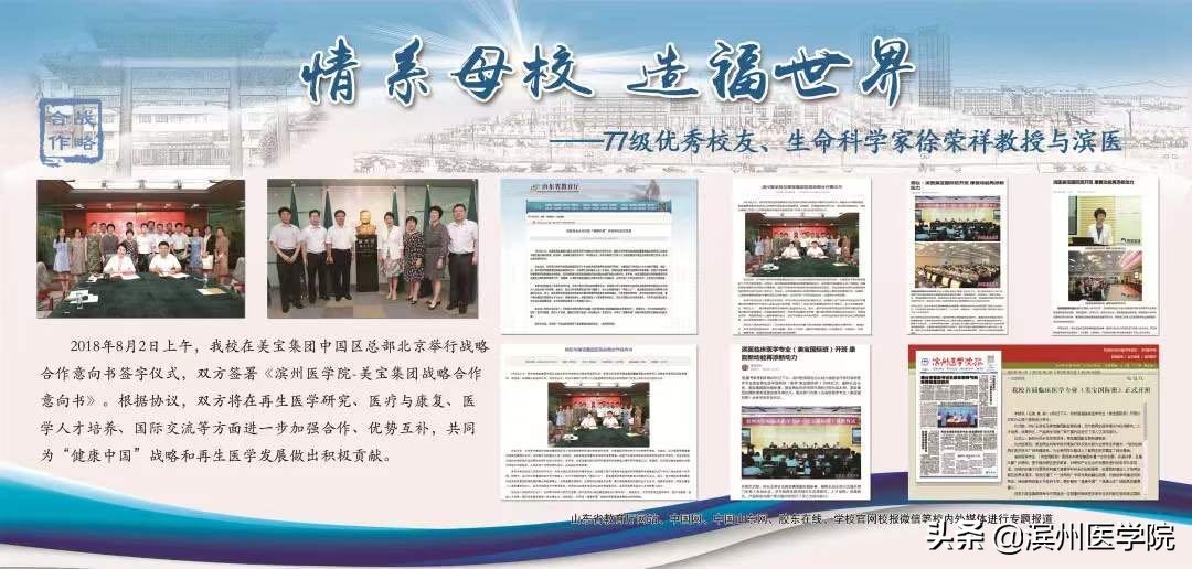 作为徐荣祥先生的母校,滨州医学院接收到了来自徐荣祥先生创建的美宝集团的大力协助,签署了战略合作协议;捐赠三千万元设立"滨州医学院徐荣祥教育基金";冠名"荣祥楼";设立"滨州医学院徐荣祥再生医学研究中心";组织建立临床医学国际美宝班。