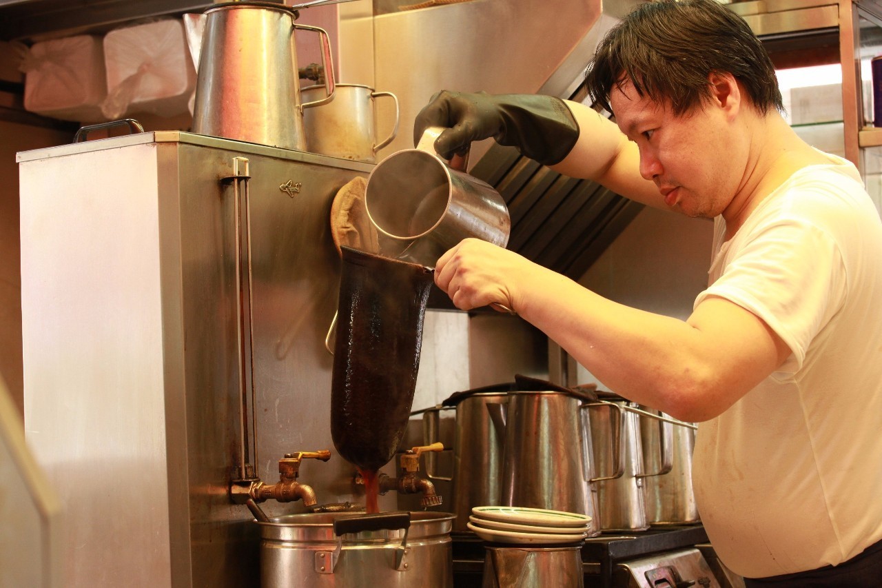 兰芳园师傅正在制作丝袜奶茶。图 / 黄静利