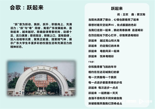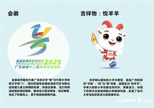 广东省教育厅体育卫生与艺术教育处处长王静娴介绍了本届省大运会的会徽、吉祥物、会歌。会徽融合代表广东的汉字“粤”与代表大学的英文字母“U”,简约而富有动感的线条巧妙勾勒出运动健儿奋力拼搏的形象,传递出青春、活力和挑战自我的竞技精神。吉祥物以喜悦的小羊为原型,源自广州的别称“羊城”,“悦”与“粤”同音,故取名为“悦羊羊”;手举火炬的小羊形象吉祥欢乐、青春活力,体现了岭南文化的独特魅力和精神风貌,彰显了当代大学生的体育活力和青春风采。会歌为《跃起来》,“跃”意为跃动、跳跃、跃升,积极向上、充满活力;歌曲旋律青春时尚,动感十足、活力满满;歌词简洁,朗朗上口、富有韵律,加入说唱等元素,聚焦正能量、提聚精气神,展示广东大学生丰富多彩的校园生活和充满活力的精神状态。