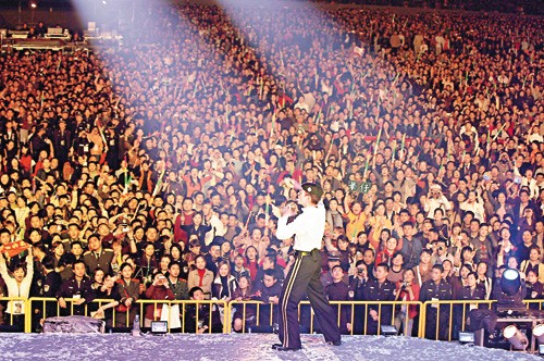 更为疯狂的,应该是刘德华2004年重庆演唱会,据当时媒体报道,当晚,入场观众八万人,未能入场而在外围的也有五万人,合共十三万人,创造了华语乐坛演唱会的历史。当现场几万歌迷一起高唱《中国人》,场内呼喊声排山倒海,场外尖叫声惊天动山城,场面十分震撼。