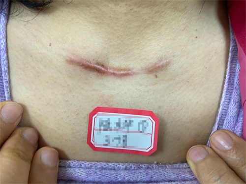 增生性疤痕形成半年左右,疤痕增生开始褪去,高度、硬度慢慢淡去,颜色由鲜红、亮红变成了暗红、紫红。